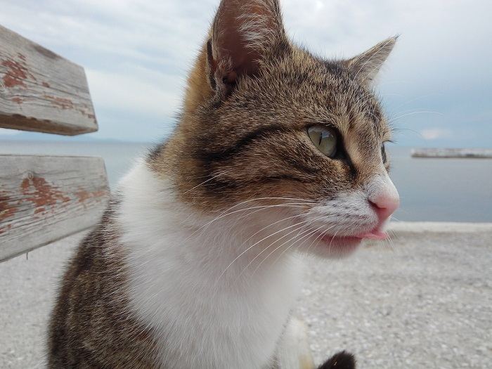 תמונה המתארת חתול 'מקשקש', מציג לראווה את לשונו בולטת מעט החוצה, התנהגות שלעתים קרובות מעוררת שעשוע והערצה.